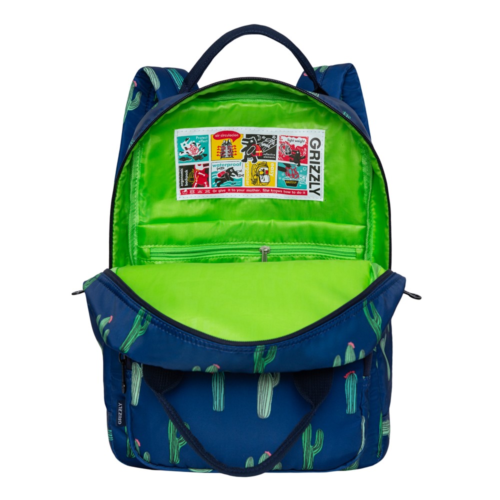 Стильный и легкий городской рюкзак GRIZZLY для прогулок и путешествий, отдыха и спорта, работы и магазина, школы и института. В рюкзаке одно вместительное основное отделение с карманом для планшета или ноутбука 13". Большой накладной карман спереди с дополнительным плоским карманом на молнии, два боковых кармана и карман быстрого доступа на задней стенке помогут разместить все необходимые вещи. У рюкзака большая удобная укрепленная спинка, регулируемые мягкие лямки и две ручки для переноски. Его можно носить и как сумку и как рюкзак. Материал с водо- и грязеотталкивающей пропиткой. Двунаправленные реверсные молнии с брендированными пуллерами на замках позволяют легко открывать и закрывать рюкзак. Рюкзак имеет прочную и грязеотталкивающую фирменную подкладку GRIZZLY.